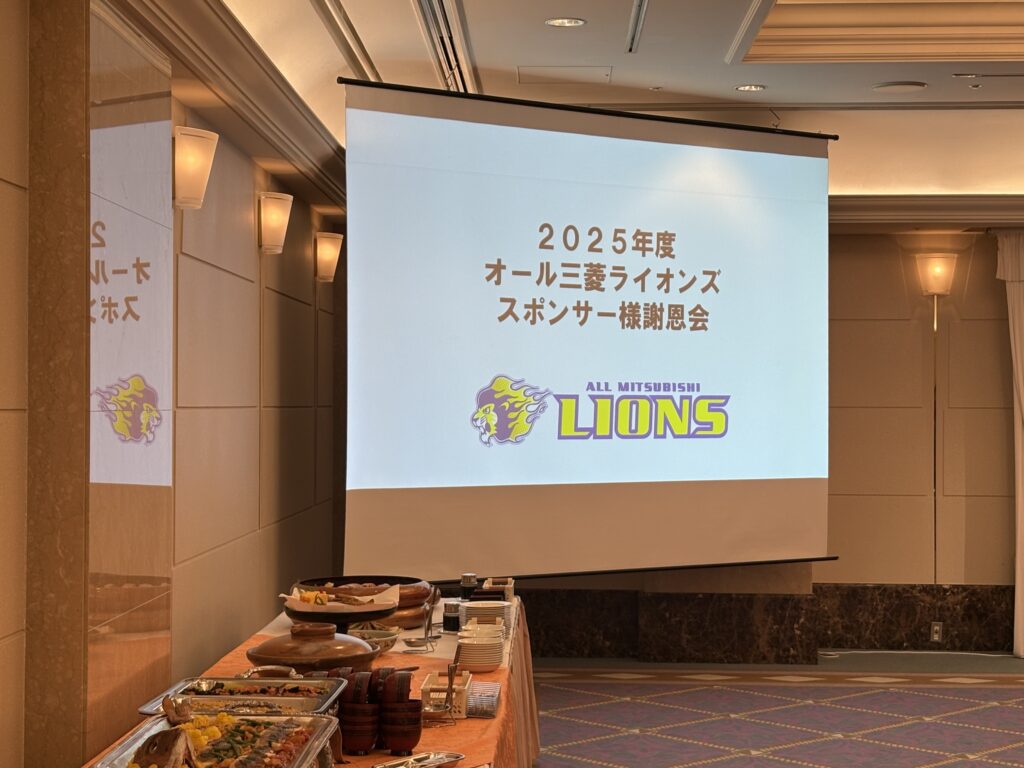 先日、当社がスポンサーとして応援しているオール三菱ライオンズの謝恩会にご招待いただき、参加してまいりました。 当日は、今シーズンを戦い抜いた選手の皆さまをはじめ、スタッフ・関係者の方々が一堂に会し、終始和やかな